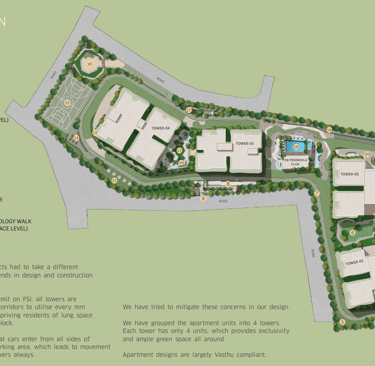 The project offers basement and stilt parking, with dedicated parking spaces for residents and provision for visitors.