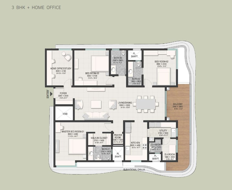 3.5 BHK: Size: 2825 sq.ft (SBA) onwards | Price: On Request |