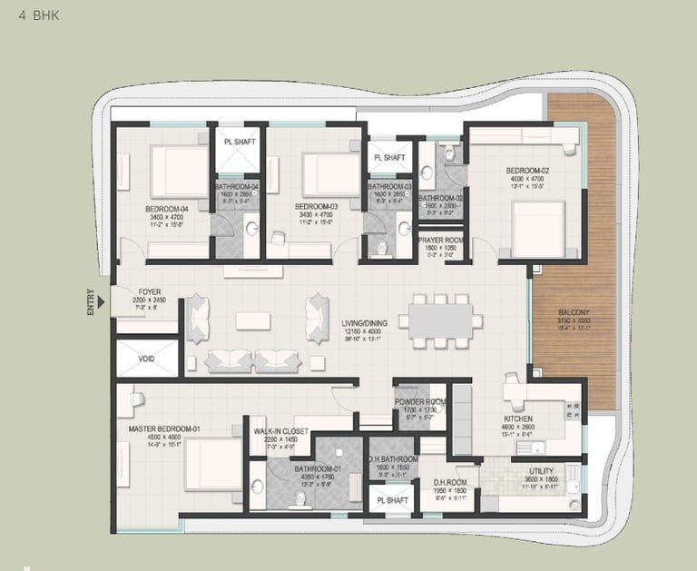 4 BHK: Size: 3045 sq.ft (SBA) onwards | Price: On Request |
